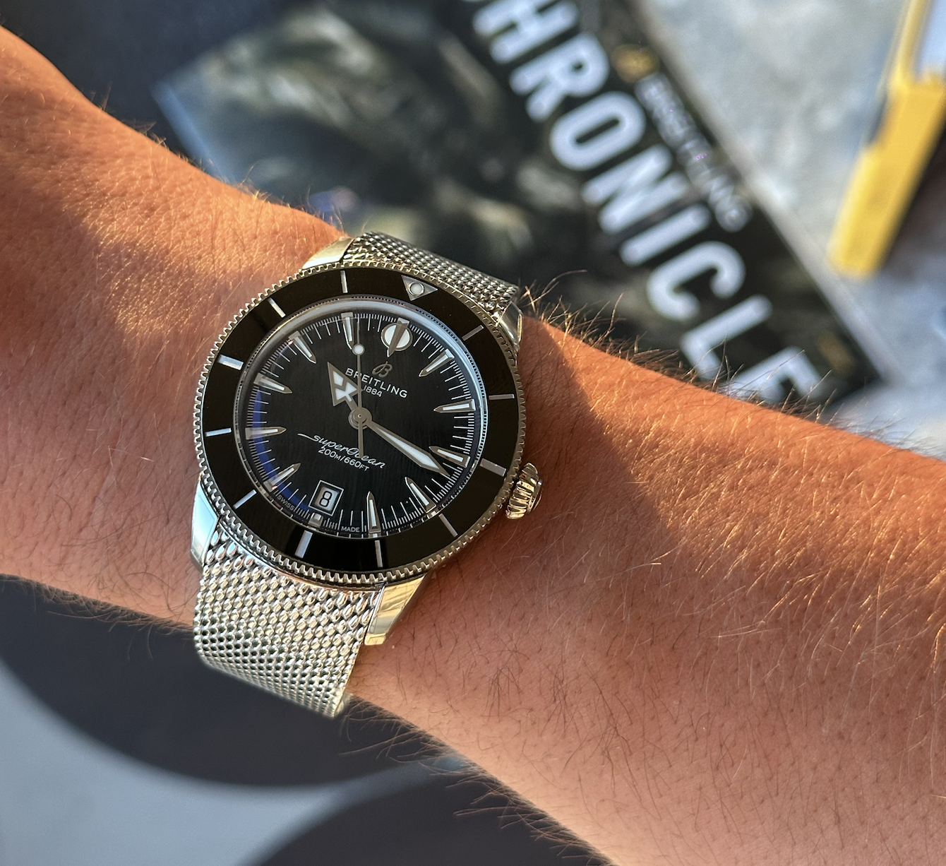 Primećujete kako nijednog trenutka nisam spomenuo da je ovo ronilački sat? To je zato što sam na licu mesta dobio kratak kurs o novoj SuperOcean seriji od strane Tomasa, Breitlingovog časovničara i čoveka koji je sada zadužen za trening i obuku zaposlenih. Rekao mi je ”Strahinja, ovo nije dajver i zapravo nikada nije bio”. Pitao sam kako je to moguće s obzirom na vodootpornost i ISO sertifikate za ronjenje koji ovaj sat ima. Rekao je da je kroz istoriju SuperOcean Heritage serija važila za lifestyle komad. Ovi časovnici se definišu kao letnji satovi, satovi za plažu, bazen, surfovanje, ali ne i za profesionalno ronjenje.