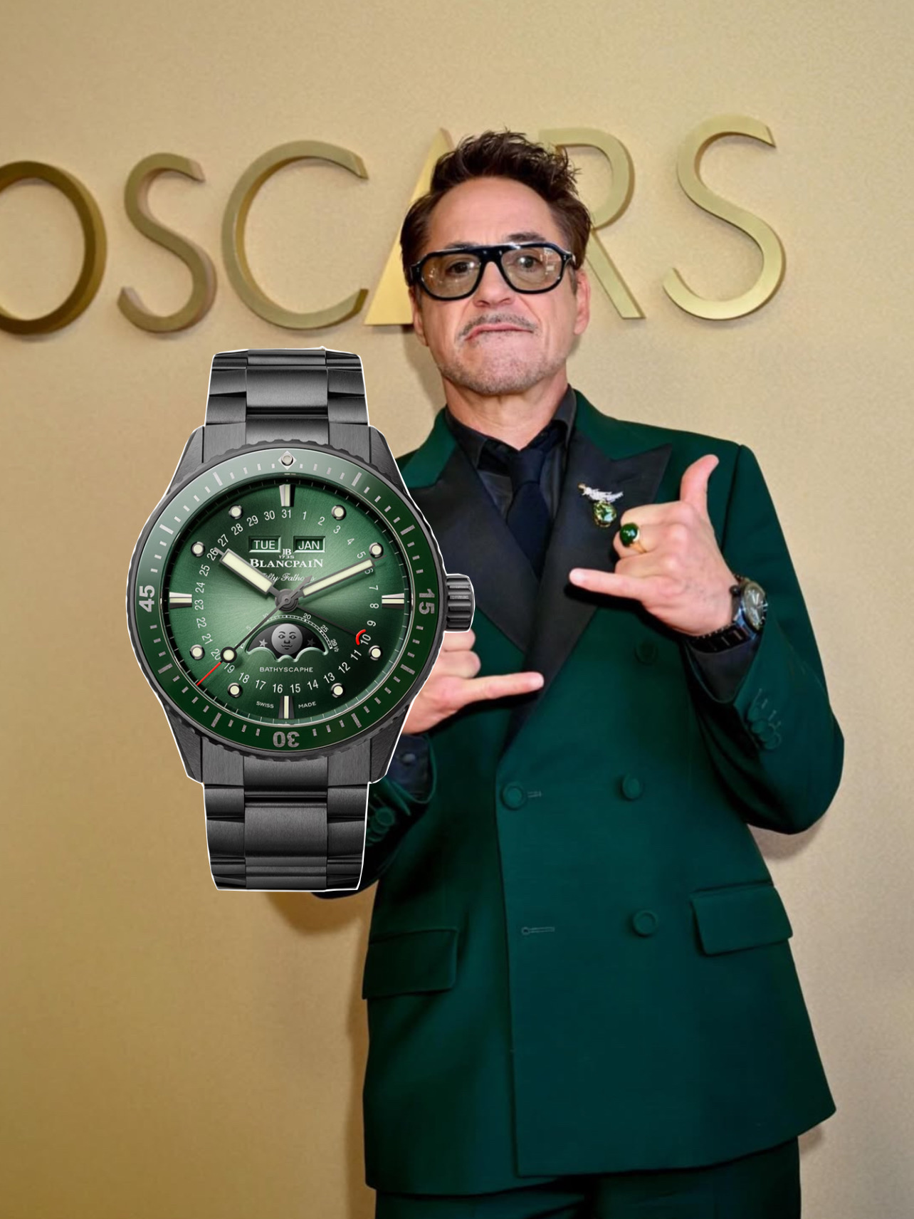 Downey je bio jedan od retkih prisutnih koji je na ceremoniju došao sa keramičkim modelom. On je odabrao Blancpain Bathyscaphe Quantieme Complete Phases de Lune. U pitanju je model u crnoj keramici prečnika 43mm sa zelenim sunburst brojčanikom a krase ga komplikacija kompletnog kalendara kao i moon phase indikatora. Salonska cena ovog modela kreće se oko 18.000 EUR.