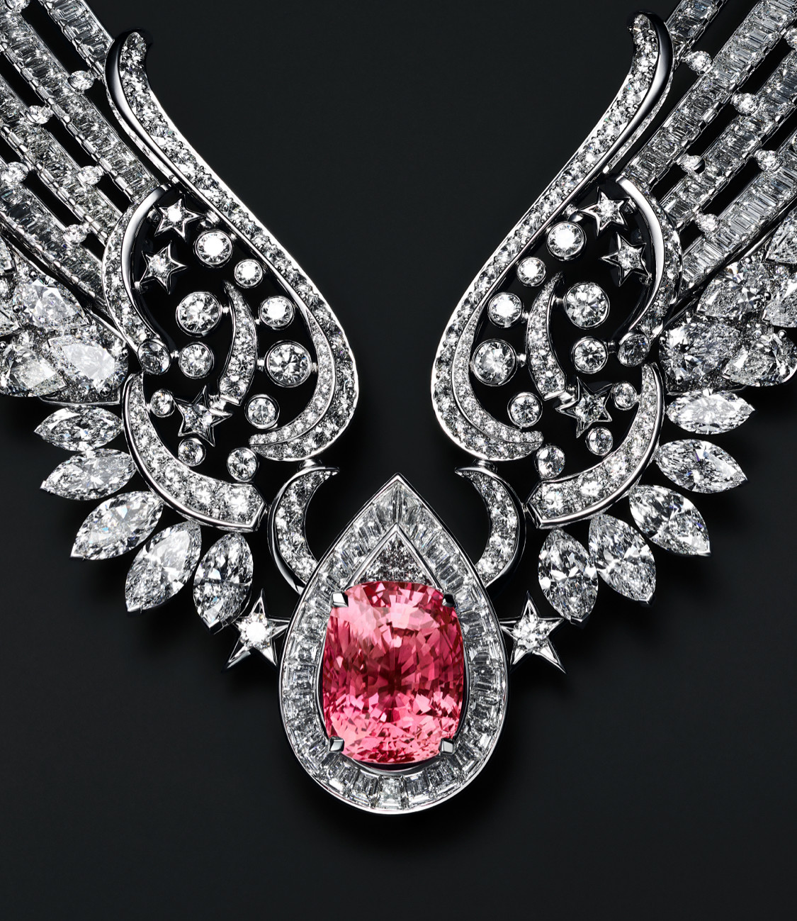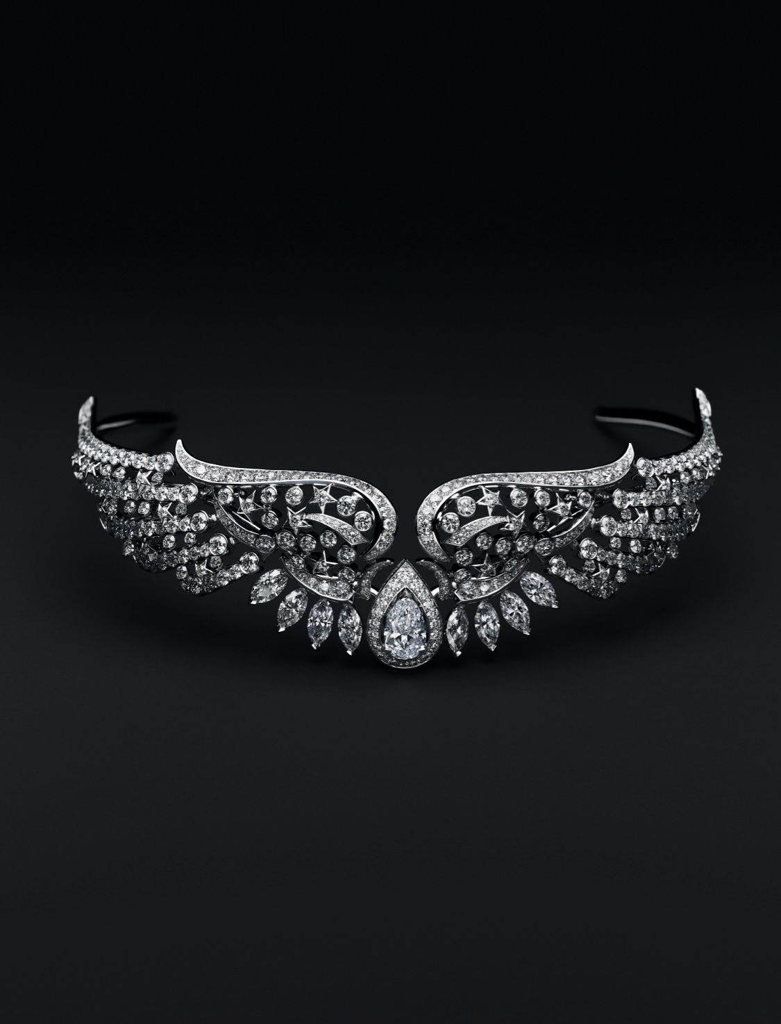 Prikazana ogrlica Dazzling Star, predstavlja svjedoka o bezvremenosti klasika i motivu zvijezde, koji je po viđenju Coco Chanel vječno moderan. Ekspresija moći, ogledana kroz glamurozni spektar diferencijalnih kreacija aeternitas iskre, kreirana kroz odsjaj nebeskog svoda u kometama dijamantskog sliva, očaravajuće djeluje. Crne perle simbolišu čuvenu haljinu Dreams Come True, odajući joj omaž. Dio nakita koji se bazira na motivu krila, posve nježno i suptilno odaje oksimoronski produkt, njegova nježnost suprotna je neshvatljivoj transcedentnosti zlata i dijamantskoj dominaciji koja ga sačinjava.