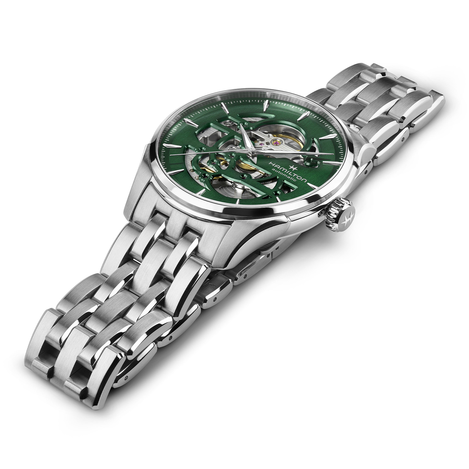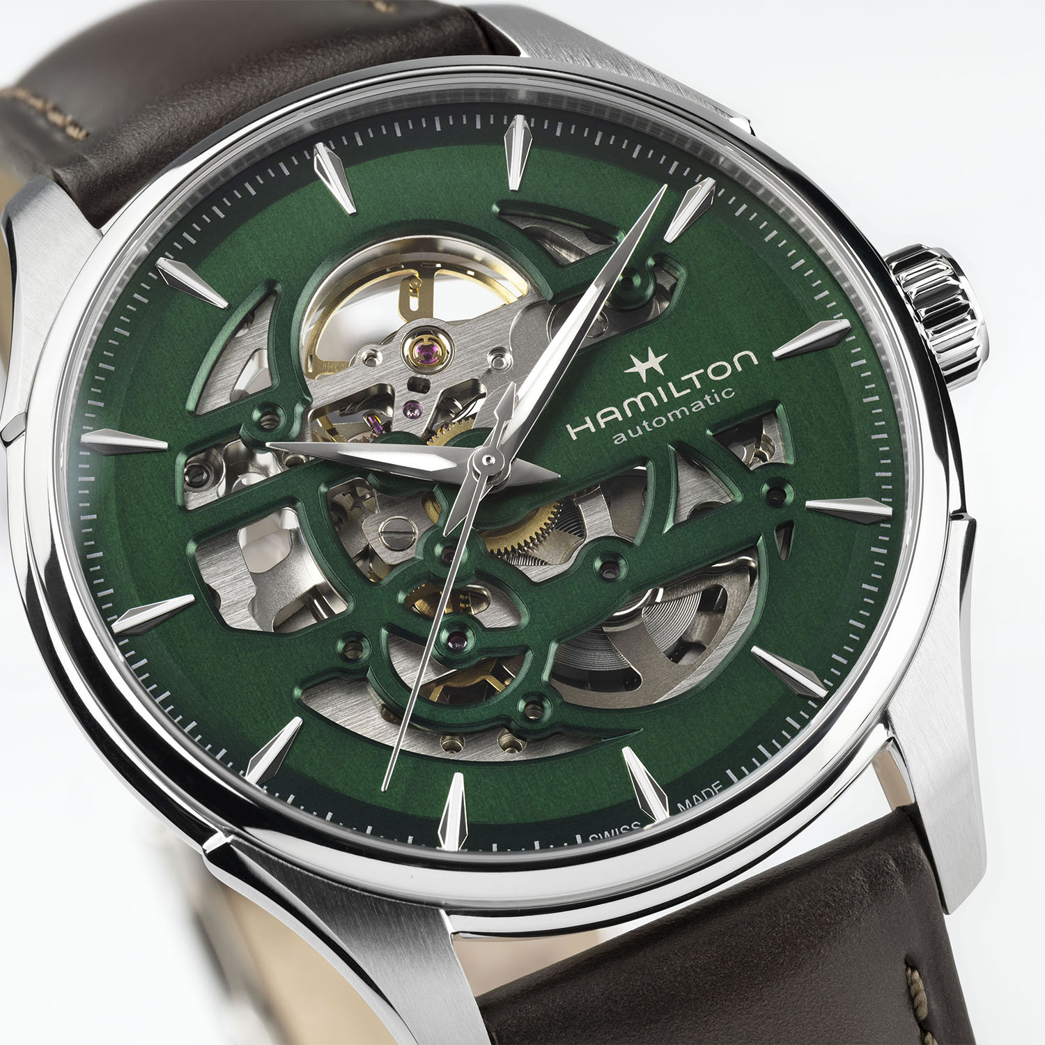 Kad sam video prve slike novog Hamilton Jazzmaster Skeleton Empire Green, odmah mi je bilo jasno da je ovo pokušaj da se model osveži bez da se izgubi ono što ga čini prepoznatljivim. Jazzmaster Skeleton je već godinama jedan od prodavanijih Hamilton satova: proziran, donekle sportski, ali sa skeleton mehanizmom koji otkriva unutrašnjost sata, takt mehanizma, što kod ljubitelja satova puno znači.