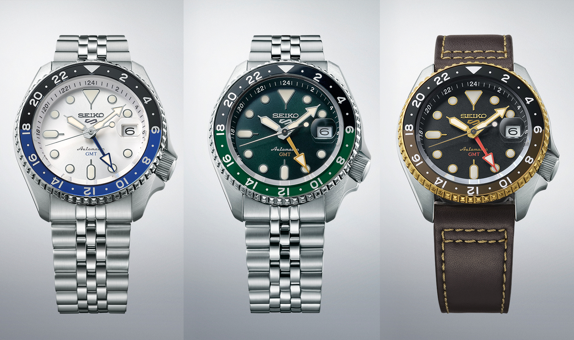 Pored Marinemaster modela, Seiko je najavio i tri nova modela u 5 Sports GMT liniji: SSK033, SSK035 i SSK036. Ovi modeli dolaze u kućištu od nerđajućeg čelika dimenzija 42,5 x 13,6 x 46 mm i koriste automatski GMT kalibar 4R34. SSK033 ima bijeli brojčanik sa plavom GMT kazaljkom i Batman crno-plavim bezelom, SSK035 je možda i najljepša GMT 5-ica sa zelenim brojčanikom sa zlatnom GMT kazaljkom i zeleno-crnim bezelom. I poslednji od ove trojke je SSK036 koji dolazi na kožnom kaišu sa crnim brojčanikom i crno-braon-zlatnim detaljima.