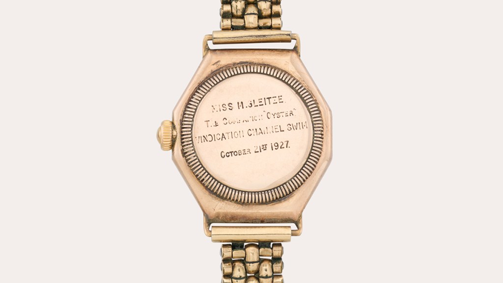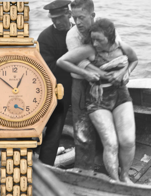 “You will like to hear that the Rolex Oyster watch I carried on my Channel swim proved itself a reliable and accurate timekeeping companion even though it was subjected to complete immersion for 10h24 hours in sea water at a temp of not more than 58 and often as low as 51. This is to say nothing about the sustained buffeting it must have received. Not even the quick change to the high temp of the boat cabin when I was lifted from the water seemed to affect the even tenour of its movement. The newspaper man was astonished and I, of course, am delighted with it. (25 October 1927).” Mercedes Gleitze