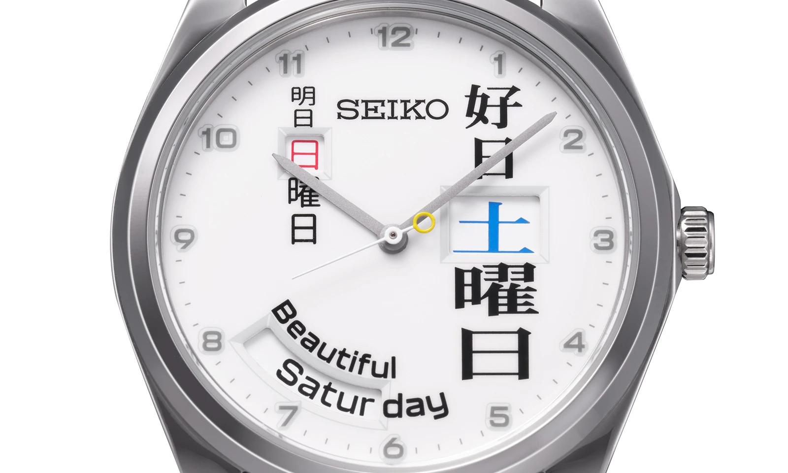 Ovaj sat ne prikazuje samo današnji dan, već i dan koji dolazi sutra. Uz japanski i engleski prikaz naziva dana, na brojčaniku se pojavljuju i vedri, optimistični natpisi, kao svojevrsna želja da svaki dan bude dobar dan. Prozori i arapski brojevi naglašeni su svijetloplavim sjenčenjem koje podsjeća na vedro nebo i stvara zanimljiv trodimenzionalni efekat.