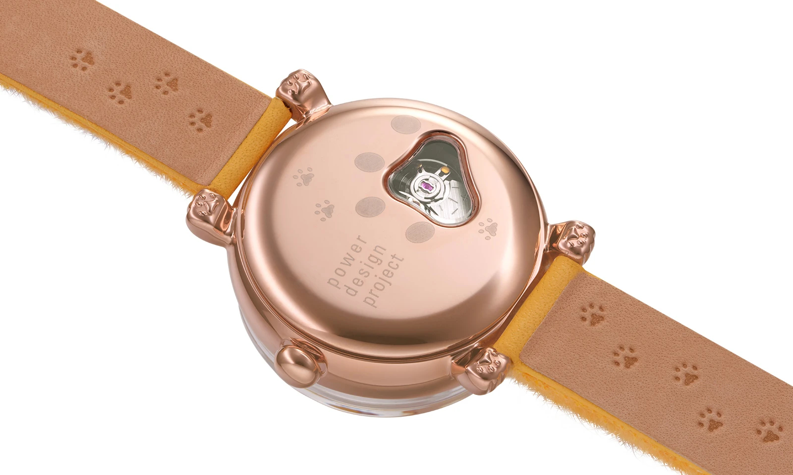 Na poleđini kućišta nalazi se izrez u obliku Ten-chanovog otiska šape kroz koji se vidi balans mehaničkog mehanizma, a čak su i lugovi oblikovani poput njegovih udova. Sitni detalji, uključujući i jastučiće šapa sa donje strane, pokazuju koliko je pažnje posvećeno tome da sat zaista djeluje kao mali mehanički lik na zglobu.