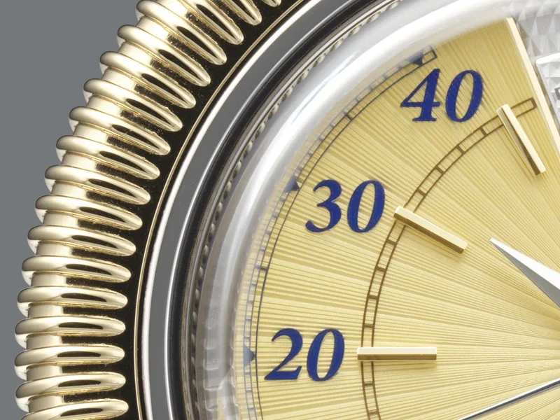 Zlatna boja na pojedinim dijelovima referiše na samu ideju krune, odnosno crown, dok je raspored kazaljki namjerno pomjeren kako bi indikator rezerve snage bio izraženiji. Ovaj model ne pokušava da sakrije mehaniku, nego je pretvara u glavni dio priče.