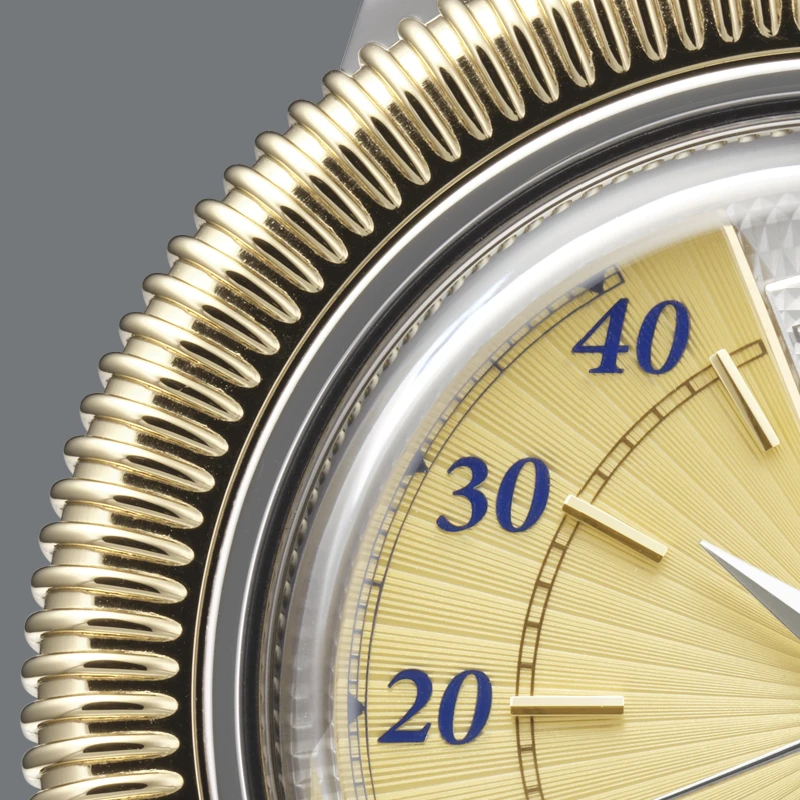 Kod ovog modela ta filozofija je pretvorena u vrlo konkretan dizajn. Bezel i krunica funkcionišu poput međusobno povezanih zupčanika, pa sam čin navijanja postaje vizuelno i taktilno naglašen. Okretanjem bezela korisnik jasnije osjeća prenos sile unutar mehaničkog sata, što cijeli doživljaj čini dinamičnijim i intuitivnijim.