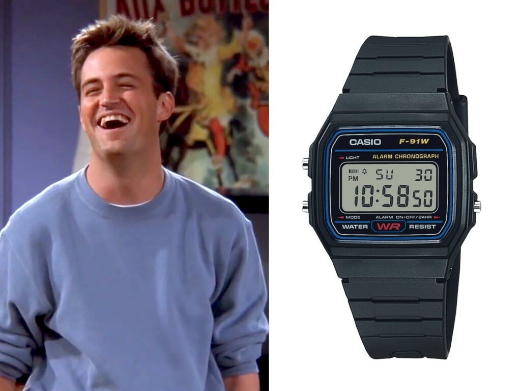 Chandler je najčeće je viđen bez ručnog sata, no na internetu sam pronašao informaciju i fotografiju vrlo slabe rezolucije na osnovu koje su fanovi zaključili da Chandler nosi Casio F91W. Chandlerov odabir ovog klasika ne iznenađuje, jer se savršeno uklapa u njegovu opuštenu, ali šarmantnu pojavu. Ovaj kultni Casio digitalni sat, prepoznatljiv po svojoj jednostavnosti i funkcionalnosti, i danas se nov može nabaviti po pristupačnoj cijeni od otprilike 25,00 EUR. Ovdje napominjem da informacija nije provjerena, već je preuzeta sa interneta.