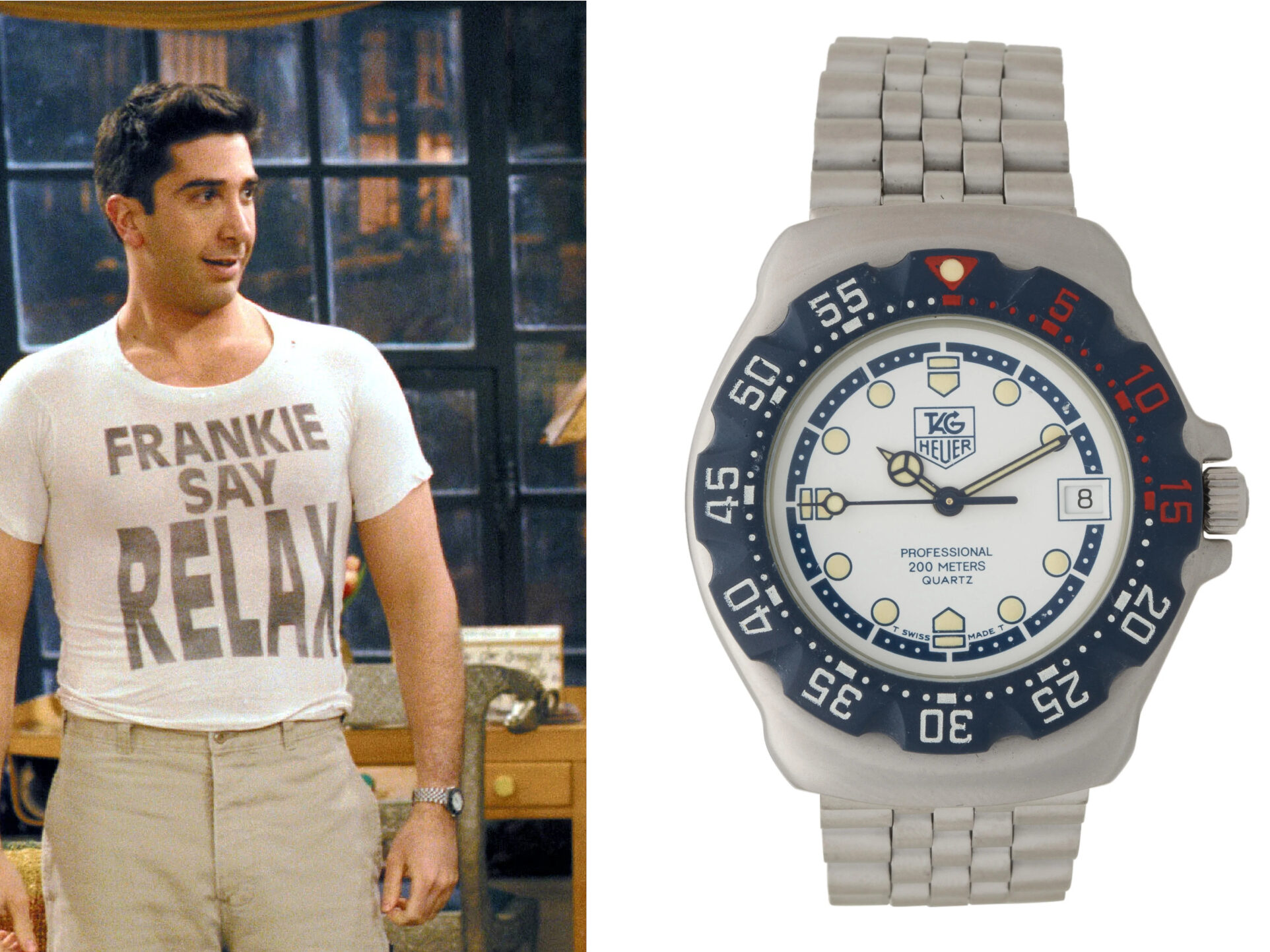 Ross Geller, genijalni paleontolog i ključni lik u “Prijateljima”, osvaja publiku svojom neuglednom šarmantnošću i karakterističnim smislom za humor. Njegova nezaboravna ljubavna saga s Rachel, popraćena nespretnim trenucima, kao što je čuveni “We were on a break”, čini ga neizbrisivim dijelom televizijske istorije. No, dok pratimo njegove avanture, posebnu pažnju usmjeravamo na sat koji krasi njegov zglob. Kroz deset sezona “Prijatelja”, primjećujemo Rossa sa TAG Heuer modelima, a među najupečatljivijima je TAG Heuer Formula 1 sa kvarcnim mehanizmom, dodajući jedinstveni pečat njegovom karakteru i stilu. Na ruci Dr Gellera vidi se Tag Heuer Professional Formula 1 u čeliku sa bijelim brojčanikom i plavim bezelom. Ovaj model ima širinu od 35mm i dolazi sa integrisanom narukvicom. Trenutna cijena ovog modela je oko 250 EUR.