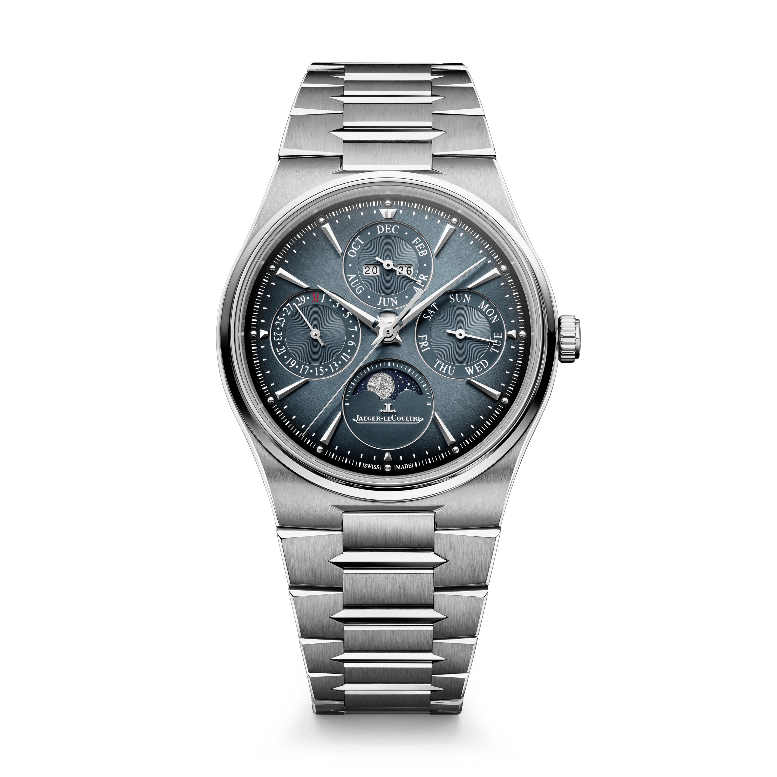 Master Control Chronometre Perpetual Calendar časovnik, kreiran je u čeliku, njegov promjer iznosi 39 mm x 9.2 mm, posjeduje integrisanu čeličnu narukvicu, podbrojčanički obodi smješteni na sunray blue brojčaniku sivog odsjaja, plave baze, predstavljaju indikatore godine, mjeseca dana i datuma, dok je mjesečeva faza smještena na pozciji šest. Velelepnost i pijedestal vizuelnog dostignuća ogledan je u pomenutoj mjesečevoj fazi, koja se stidljivo otkriva darujući moonligh odsjaj, postignut usljed živopisne kreacije mjeseca u opalinu.