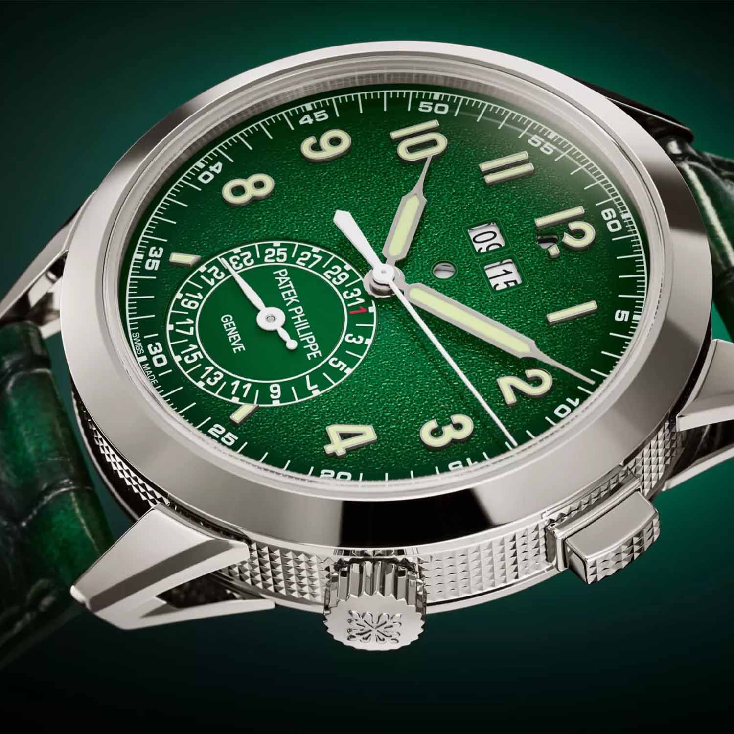 Među novitetima svakako se izdvaja novi Calatrava Alarme 24H ref. 5322G. Patek je ovdje praktično pojednostavio prethodni model 5520 i umjesto kombinacije alarma i Travel Time funkcije fokus prebacio samo na alarm. Po meni, to je bio vrlo dobar potez, jer novi model djeluje mnogo čistije, elegantnije i manje napadno. Kućište od bijelog zlata promjera 41 mm dobilo je prepoznatljivi Clous de Paris dekor po cijelom obodu, dok brojčanik, dostupan u plavoj ili zelenoj verziji, prati estetiku koju smo već vidjeli kod referenci 5226 i 5326, sa granuliranom teksturom i tamnim gradijentom prema ivicama.