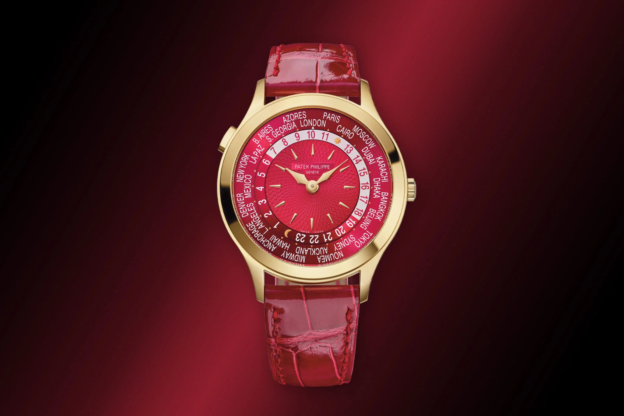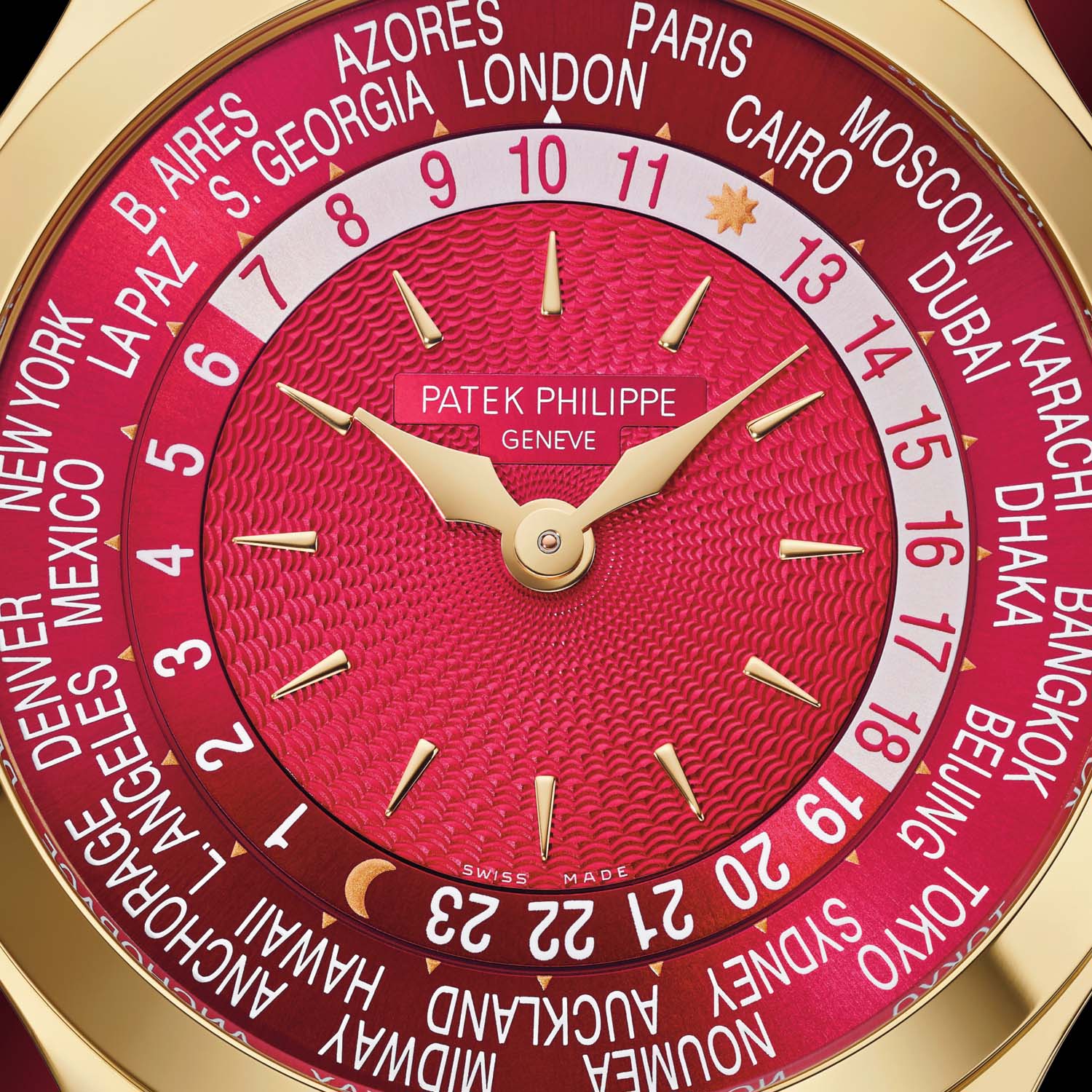 Kada govorimo o komplikacijama koje su gotovo zaštitni znak Patek Philippe kuće, onda tu svakako spada World Time. Novi ref. 7129J-001 zanimljiv je upravo zato što ovu veliku Patek komplikaciju donosi u kompaktnijem, nenametljivijem formatu. Kućište od žutog zlata ima svega 36 mm i debljinu od samo 9,18 mm, ali brojčanik čini da sat na ruci djeluje mnogo upečatljivije nego što dimenzije sugerišu. Patek je ovdje izabrao snažan carmine-red lacquer brojčanik sa ručno giljoširanom centralnom zonom u basketweave uzorku, što ovom modelu daje vrlo izražen karakter.